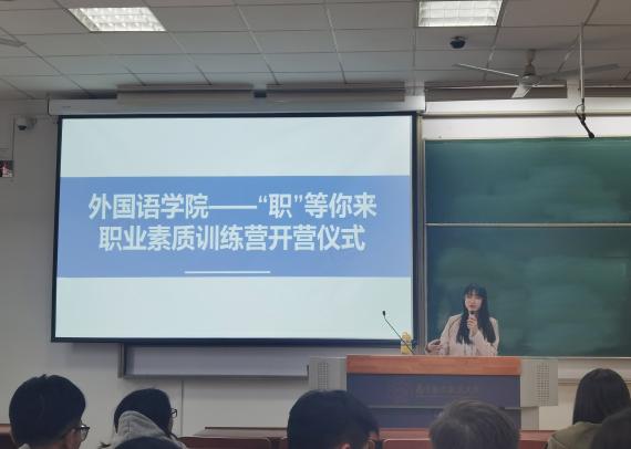 为引导学生提前了解就业、升学形势,充分利用大三学年明确目标航向,3月10日英国正版365官方网站举办了“职”等你来——职业素质训练营开营仪式。仪式由辅导员赵瑜瑶主持,2020级全体本科生参加。